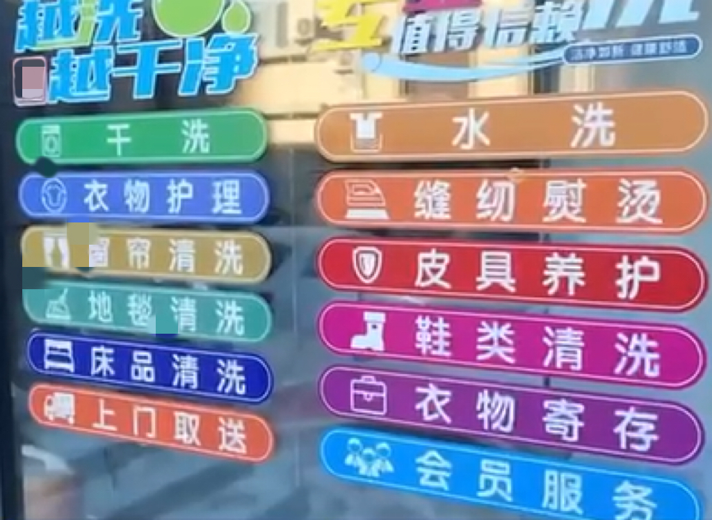 该干洗店吧台贴有“温馨提示”,明确价值2000元以上贵重物品、奢侈品需主动告知,否则损坏概不负责。
