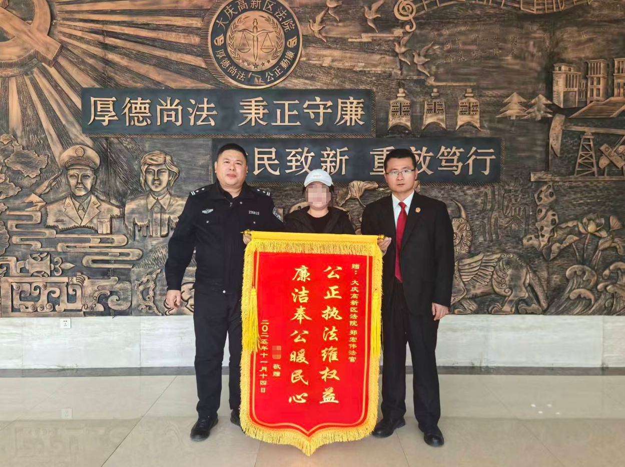“郑法官,首期2万元我已收到,多亏了你们,不然这赔偿款就打水漂了!谢谢你们!”11月17日,姜某将一面印有“公正执法维权益,廉洁奉公暖民心”的锦旗送到执行法官郑宏伟手中。