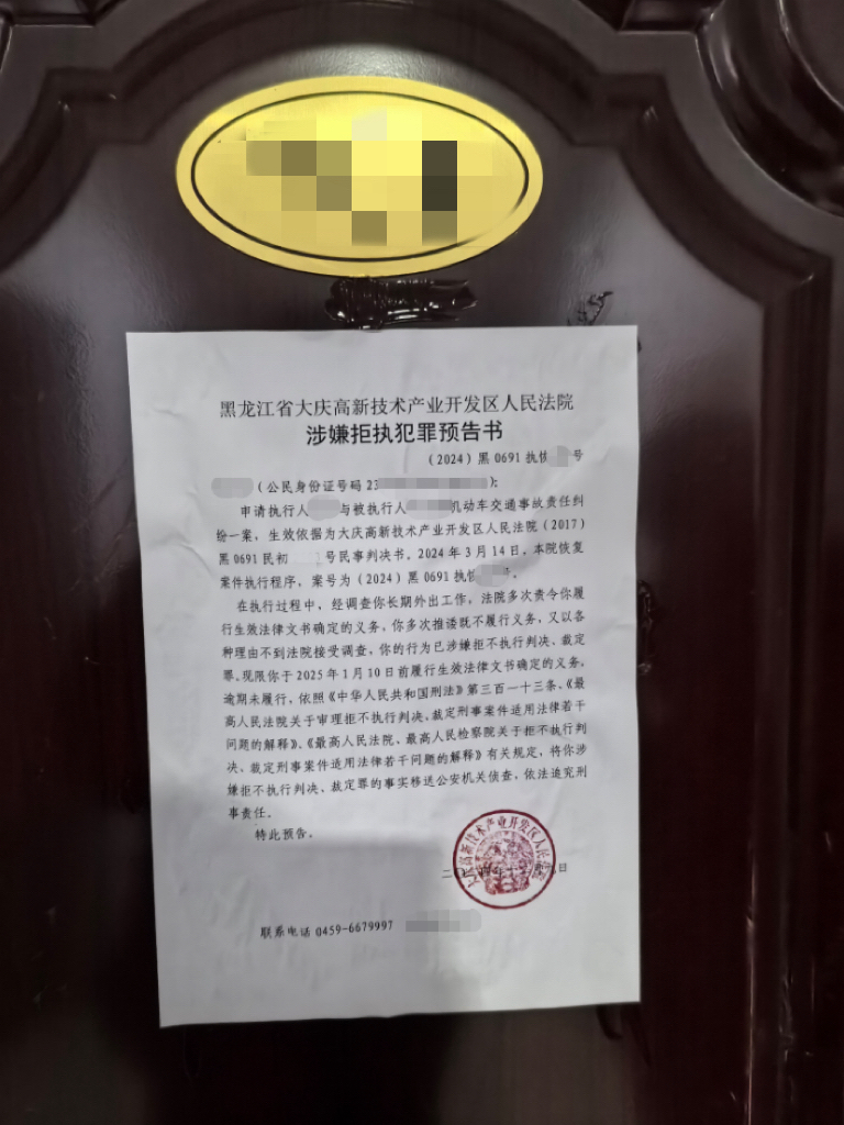 2024年12月,郑宏伟将《涉嫌拒执犯罪预告书》送至唐某父母处,告知他们唐某若再不履行义务,法院将按涉嫌拒执罪移送公安部门处理,但唐某仍心存侥幸,不为所动。
