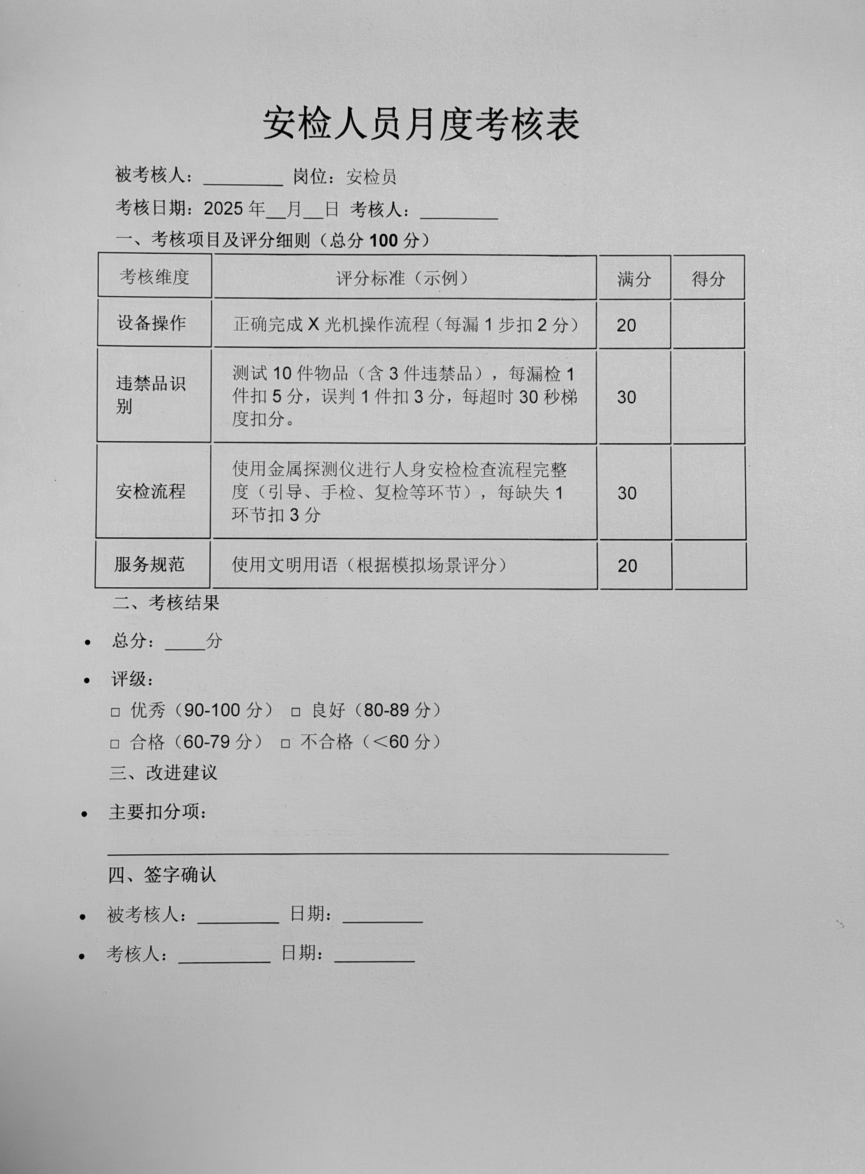 以量化考核为抓手,以精准标准为导向。此次安检能力量化考核,不仅为安检工作划定了清晰的履职边界,更让每一名安检员明确了“练什么、怎么练、练到什么程度”的目标方向。