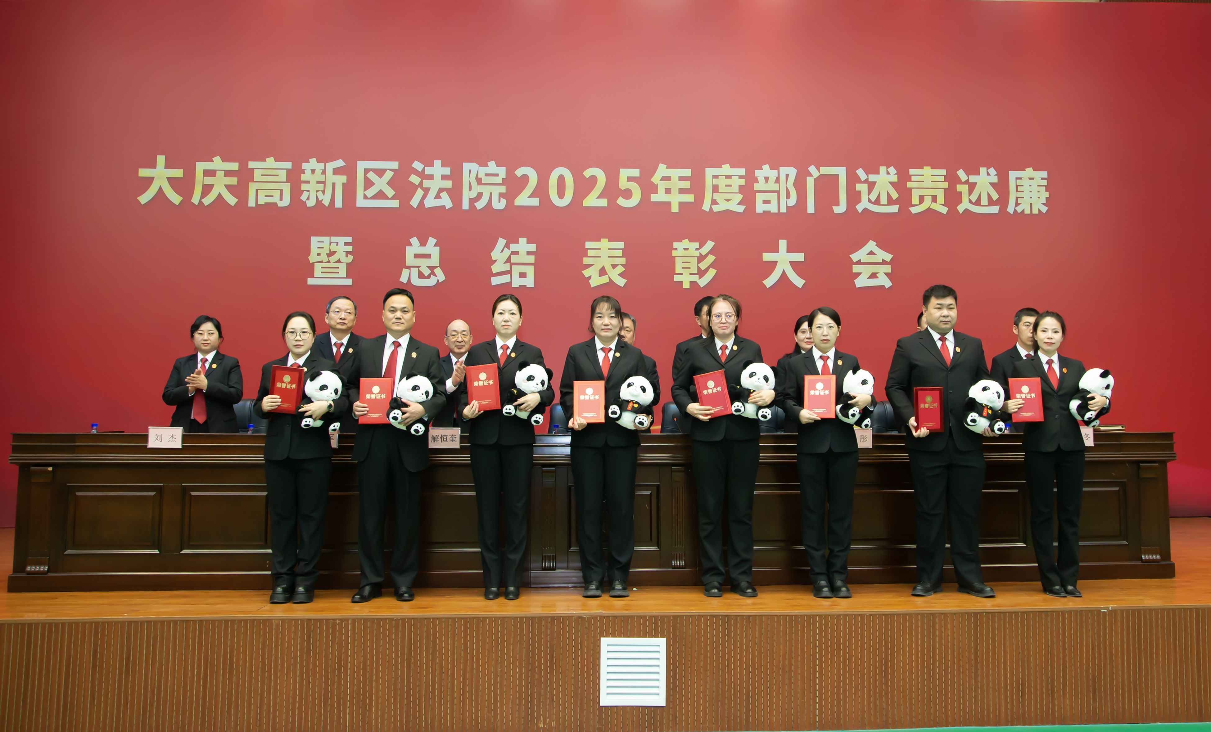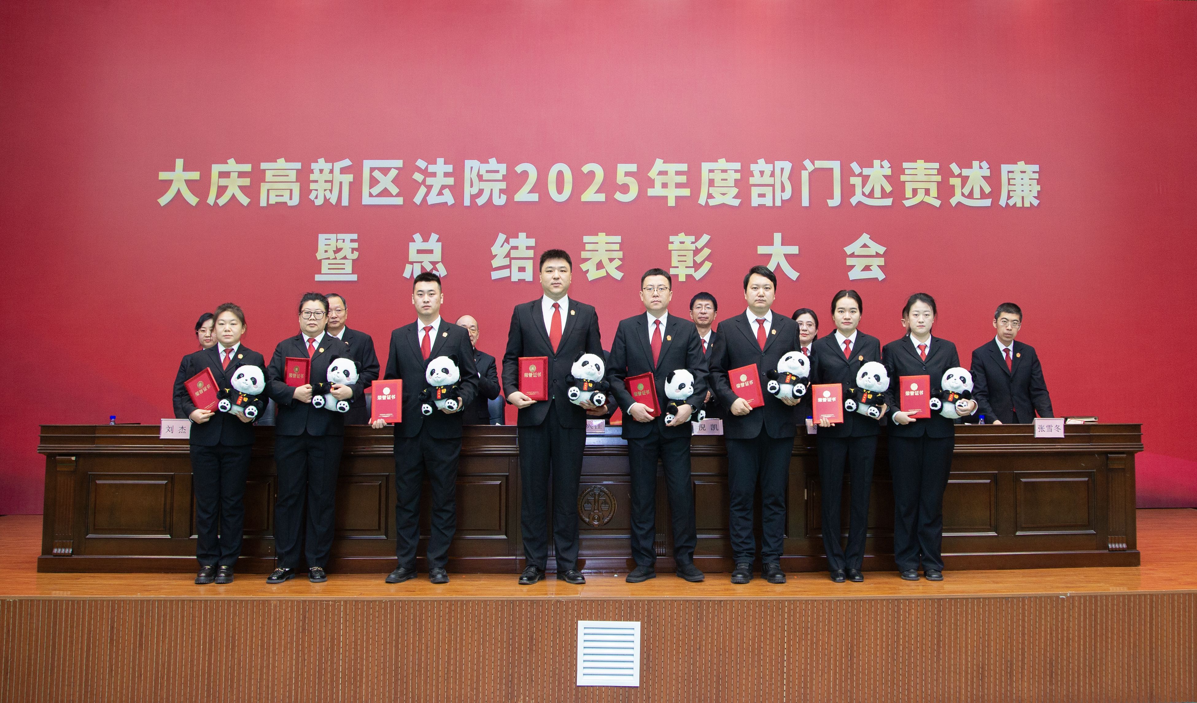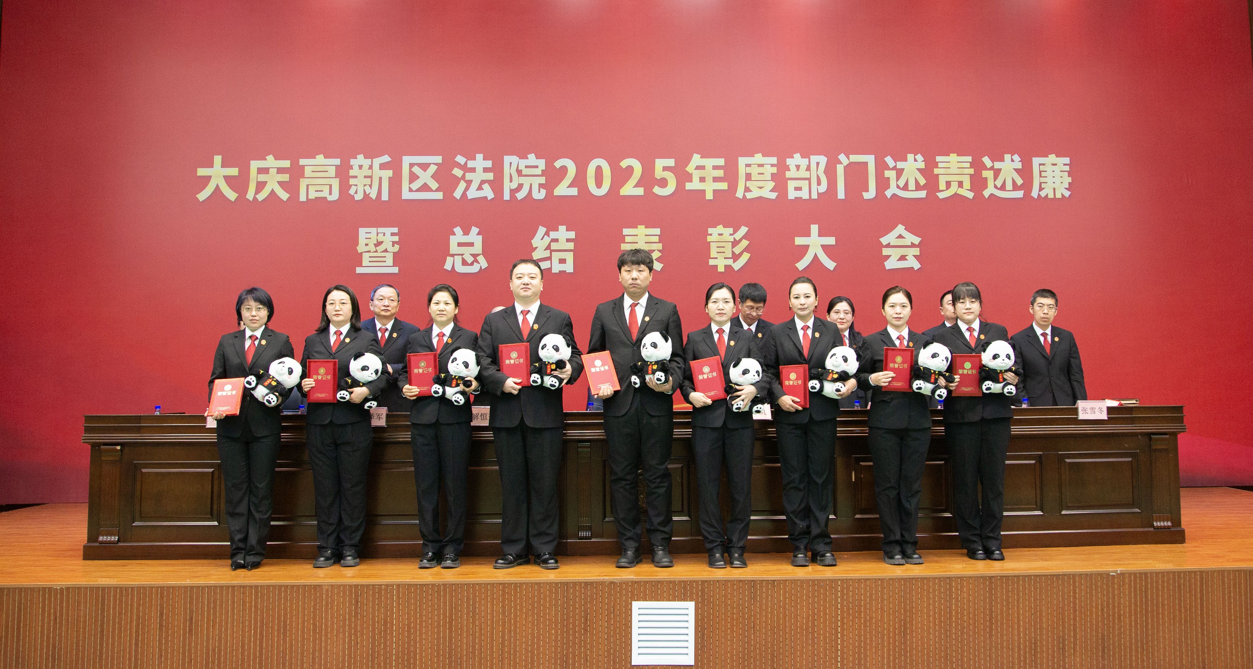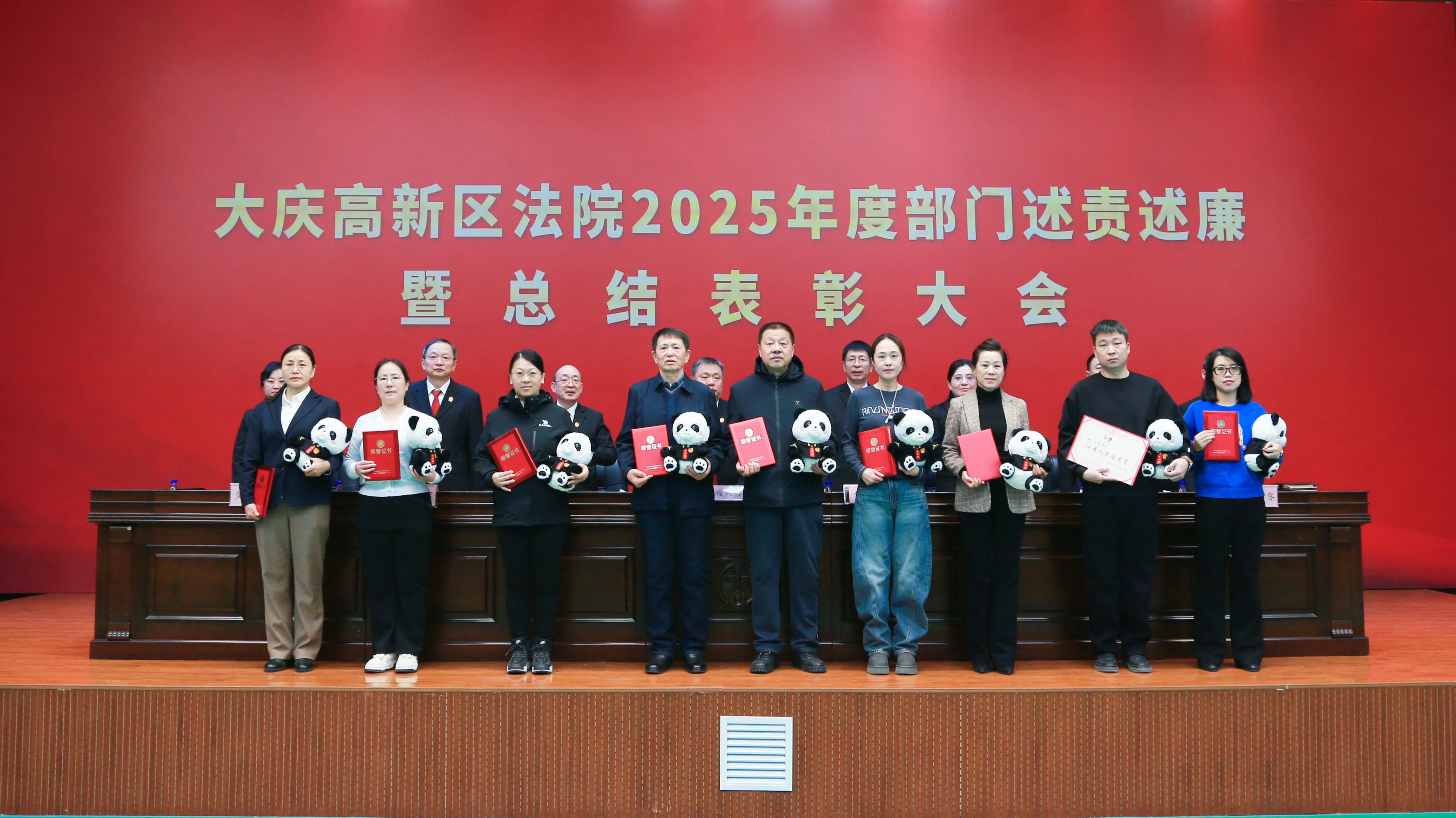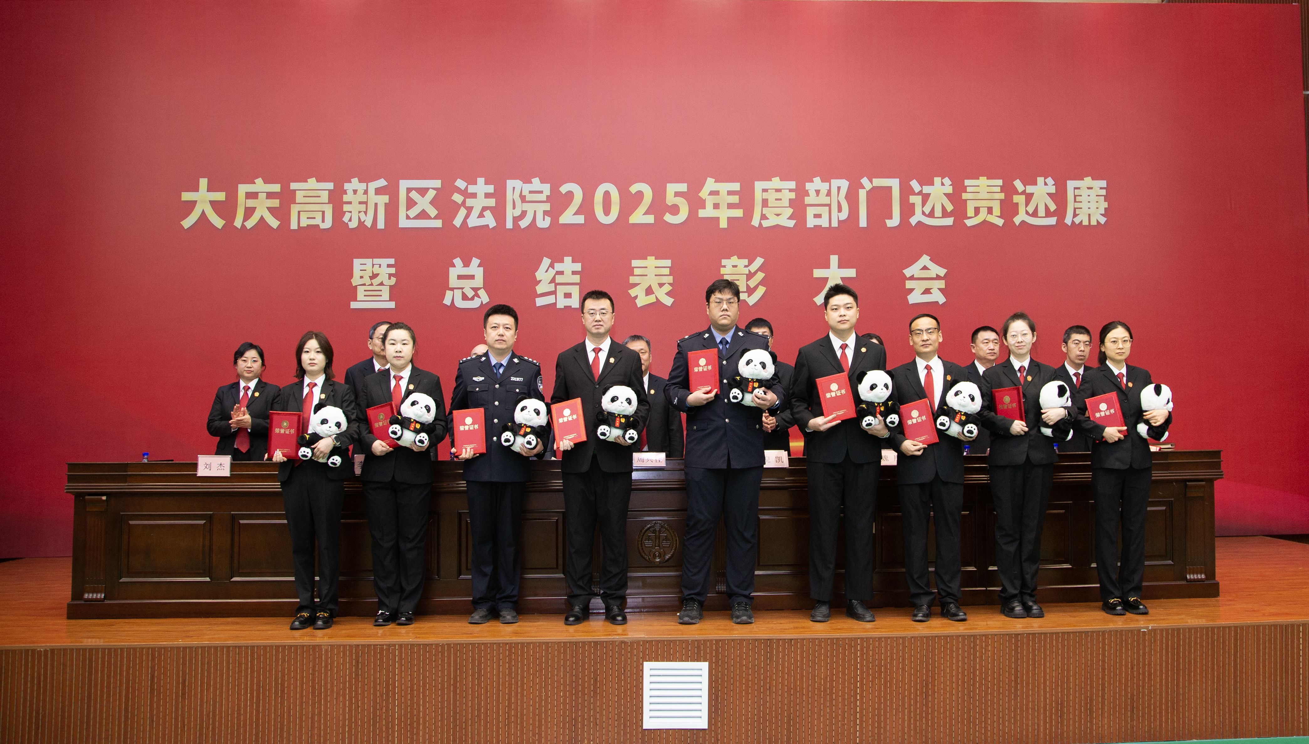 2月10日,大庆高新区法院召开2025年度部门述责述廉暨总结表彰大会,全面盘点2025年工作,对在工作中涌现出的先进部门和个人以及优秀人民陪审员进行表彰,并总体谋划部署2026年工作。分党组书记、院长周兴佳出席会议并讲话,分党组成员、副院长倪凯主持会议,全院干警参加会议。
