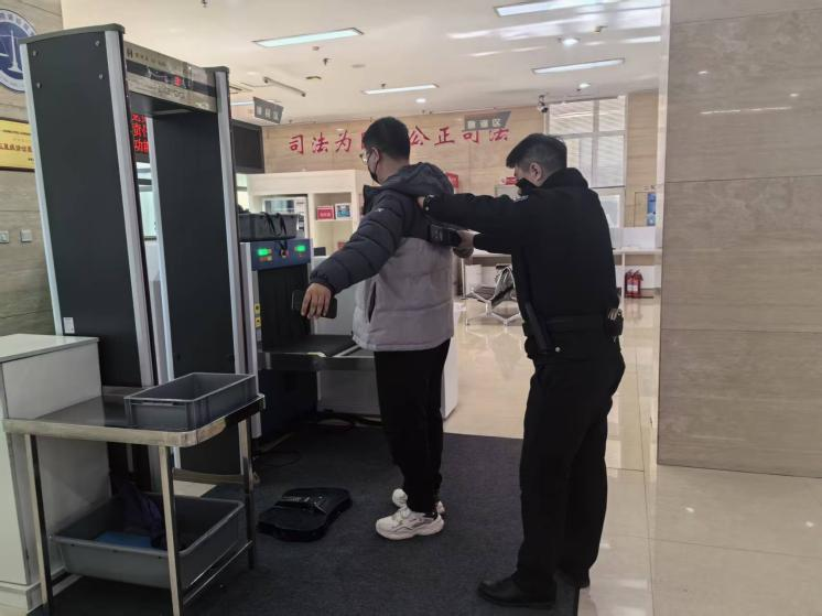 司法警察准时就位,严格落实安保要求,有序引导当事人接受安检,切实把好“安全关”。