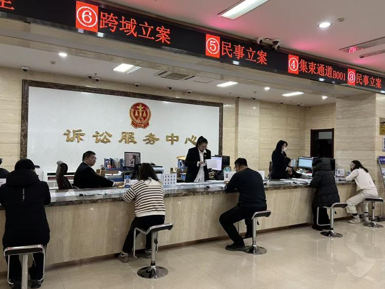诉讼服务中心的干警们整装在岗,耐心细致地为办事群众提供“一站式”诉讼服务。