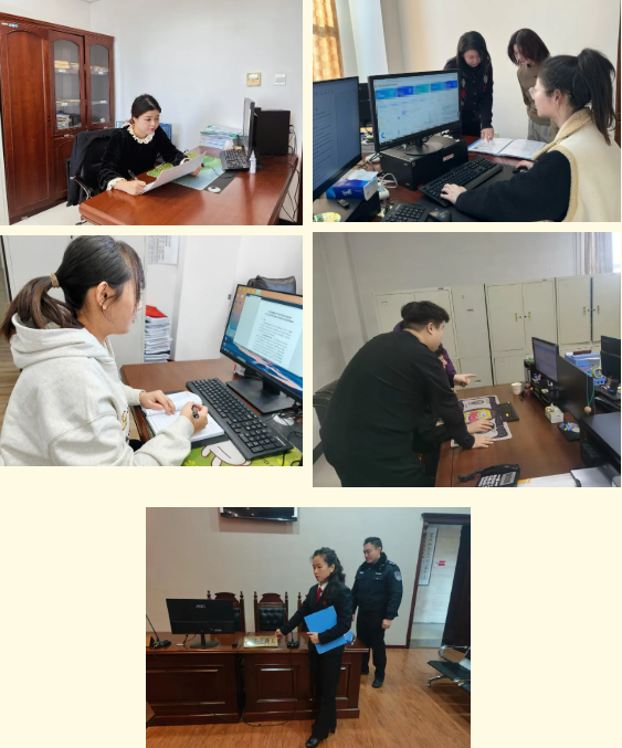 民庭、刑庭、行政庭、执行局、五湖法庭等部门干警忙着整理卷宗、准备材料、送达文书等,各项工作井然有序。