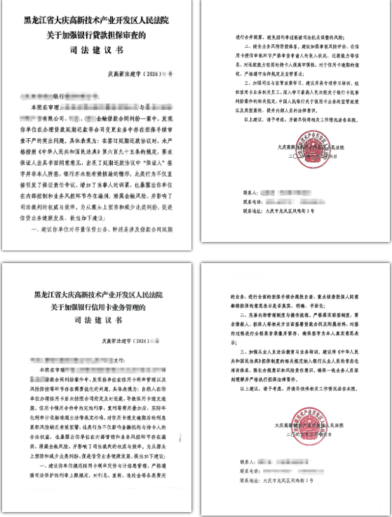 “这些年来,高新区法院用一场场实用的法治讲座、一回回深入的对接沟通、一份份精准的司法建议、一次次公正的司法裁决,生动践行着护航金融高质量发展的司法责任担当。”近日,某银行大庆分行在收到高新区法院最新制发的“关于加强贷款担保审查”的司法建议书后,该行领导李某深有感慨地说。